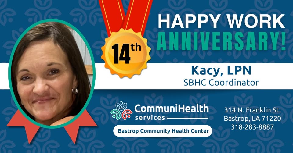Huge congratulations to Kacy, LPN and School-Based Health Center Coordinator, on her 14th Work Anniversary with CommuniHealth Services. For over a decade, Kacy has brought compassion, leadership, and unwavering dedication to our team and the students we serve. #communihealthservices #schoolbasedhealthcare #14thworkanniversary #congratskacy.