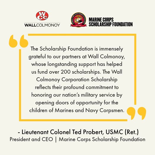 Thanks to the steadfast support of our partners at Wall Colmonoy, hundreds of Marine and Navy Corpsmen families have felt the life-changing impact of education first-hand. Since 2013, they've helped fund over 200 scholarships for military children. We’re grateful for their tremendous leadership, including veteran Marine Captains Bill and Nick Clark, who have helped us further our mission and honor the sacrifice of those who serve.