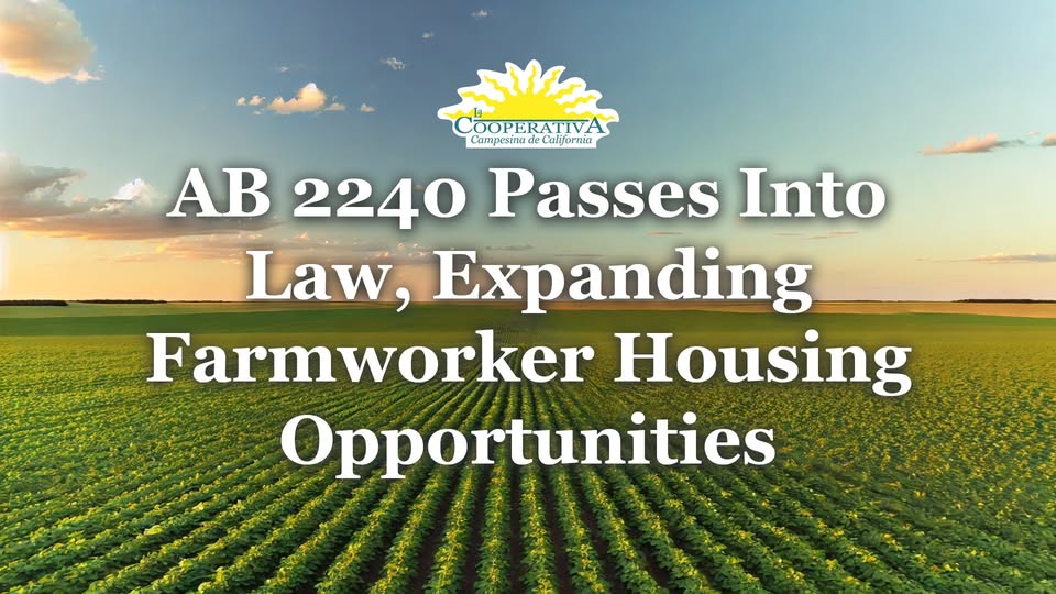 As a proud Co-Sponsor, we extend our deepest thanks to Assemblymember Dr. Joaquin Arambula for championing AB 2240, to the California Legislature for their support, and to California Governor Gavin Newsom for signing this legislation. Farmworkers are the backbone of California's agricultural industry, and AB 2240 represents a crucial step toward providing them with the dignity and stability they deserve.