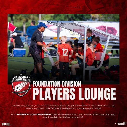 Today, we start our first players' lounge of the season. There will be a three-tent setup on the west side of Field 5 for the boys and a one-tent setup on the east side of Field 5 for the girls. Inside the Players’ Lounge, players will find a table with coolers of Gatorade, water, and snacks, where players will be invited to hang out in the lounge, spend time with their friends, and use the space to juggle, have access to small-sided games before training, and prepare before training.