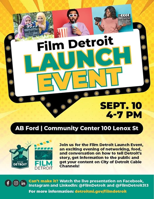 Don’t miss out on @filmdetroit313 launch event coming up on September 10th. Film Detroit Outreach event is an opportunity for community partners and film makers to learn how to amplify their voice and creative work through the City of Detroit’s digital platforms. At this event, they will learn how to: * Get their content broadcast on the City of Detroit cable channels with accompanying social media promotion * Navigate the city’s film permitting process * Network with fellow filmmakers, creatives, and content producers We will also unveil our annual Film Detroit outreach and event calendar.