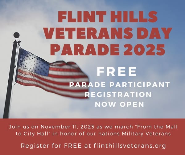 The Flint Hills Veterans Coalition mission is to foster patriotism and to honor and perpetuate the memory of area veterans' service to the country through the promotion of Veterans Day activities, providing scholarships for veterans, and other good works.