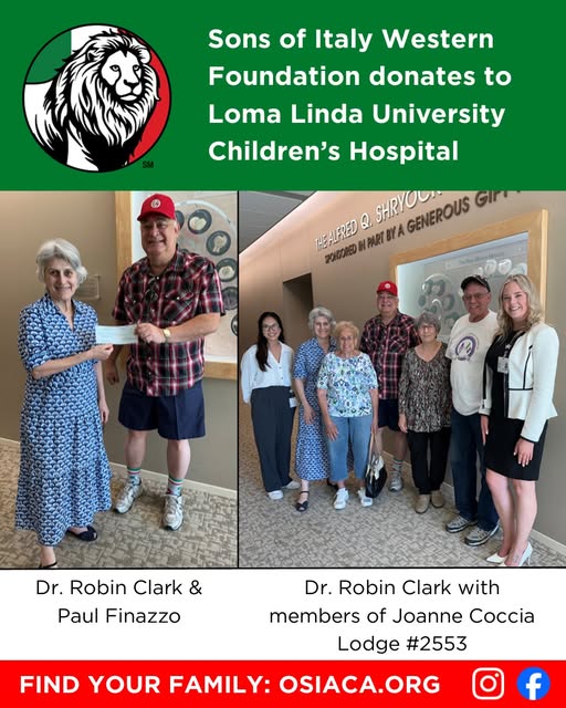 The Order Sons of Italy in America - Grand Lodge of California was founded on September 22, 1925. To preserve and promote Italian heritage and culture by supporting regional projects highlighting the contributions of Italian Americans to American society, and by contributions to scholarships, medical charities, national projects and civics programs.