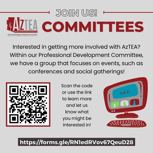 Interested in getting more involved with AzTEA. Within our Professional Development Committee, we have a group that focuses on events, such as conferences and social gatherings. If you are interested in learning more about any of the projects and getting involved, please complete the Google Form at https://forms.