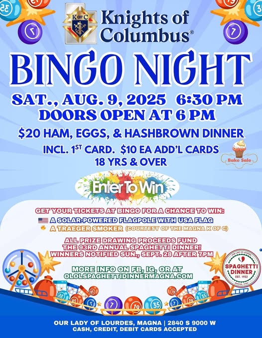 The Knights of Columbus is a Catholic fraternal organization that helps our communities through charitable events and activities.
