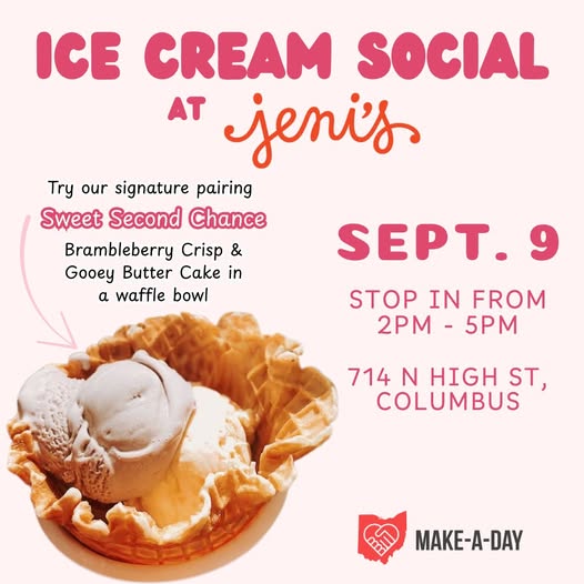 🍦Don't forget to come see us tomorrow at Jeni's Splendid Ice Creams. Swing by Jeni’s on High Street between 2–5 PM tomorrow for an ice cream treat, and a portion of all sales will go towards supporting Make-A-Day. 👉Be sure to share this post and tag friends to help us spread the word.