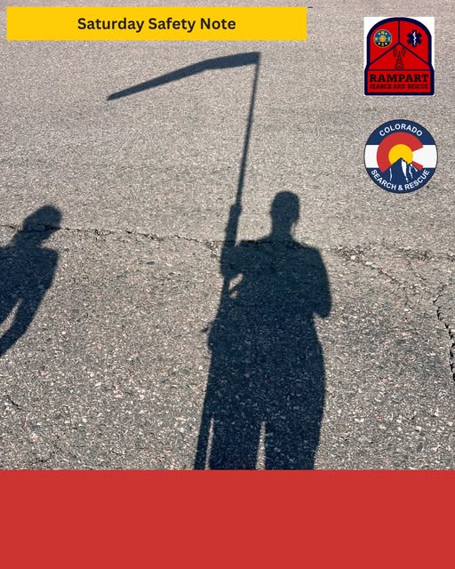 Is this a grim reaper. Or a search and rescue volunteer holding a windsock for a helicopter. Rampart Search and Rescue wants you to know that although you see lots of rescue helicopters in the media these days, we use helos as a last resort and not an "easy button.
