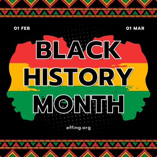 The Effing Foundation for Sex-Positivity celebrates the beauty of Blackness #blackexcellence #BlackHistoryMonth [Img desc: The profile of two faces with Black features face in opposite directions. The faces are colored red, yellow and green against a black background. At the top and bottom of the picture is a Kinte cloth design.