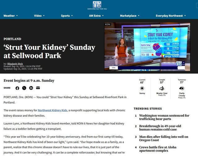 π Weβre so excited to share that Strut Your Kidney was featured on KOIN 6 News last night. A huge thank you to Elizabeth Dinh and everyone at KOIN 6 for shining a spotlight on Northwest Kidney Kids and our work. π We are especially grateful to Lauren Lynn for bravely sharing her story and showing why Northwest Kidney Kids is so important for children and families impacted by kidney disease.