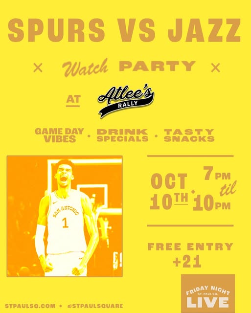 FRIDAY NIGHT LIVE EVENT ALERT‼️ The NBA is back and the Sours are taking on the Utah Jazz, come and watch the game with us at @atleesrally, you don’t want to miss this watch party, the best ambience combined with delicious drinks and cold beer, you can’t ask for more. See you at the square. Must be +21 to assist #nba #spurs #watchparty #thesquare.