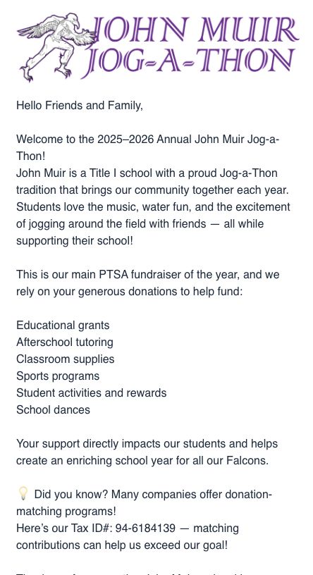 John Muir Middle School PTSA Signed in as fillergodaddy. com Sign out Signed in as fillergodaddy. com Account Sign out Letx27s Grow Together Enhancing our Childrens Education through Fundraising Collaboration and Program Support. Building a Better Tomorrow Together Join Us John Muir Middle School PTSA is a nonprofit organization dedicated to enhancing and enriching the learning experience for all students at John Muir Middle School.
