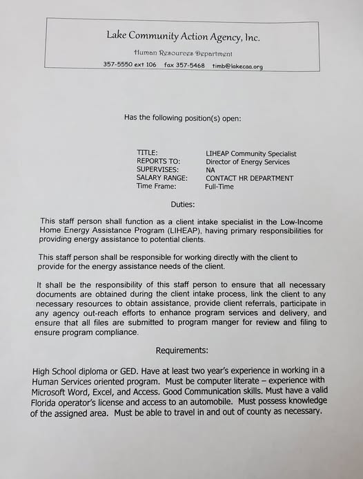 Promote self-sufficiency by reducing and eliminating barriers that contribute to the instances of poverty through a variety of programs to improve the standards of living for the children and Families we serve in Lake County, FL. ASSIST IMPOVERISHED RESIDENTS WITH ENERGY, EDUCATIONAL AND SOCIAL ASSISTANCE WITH FUNDS OBTAINED FROM FEDERAL, STATE, AND LOCAL GOVERNMENTS, PRIVATE FOUNDATIONS, AND THE PUBLIC SECTOR.