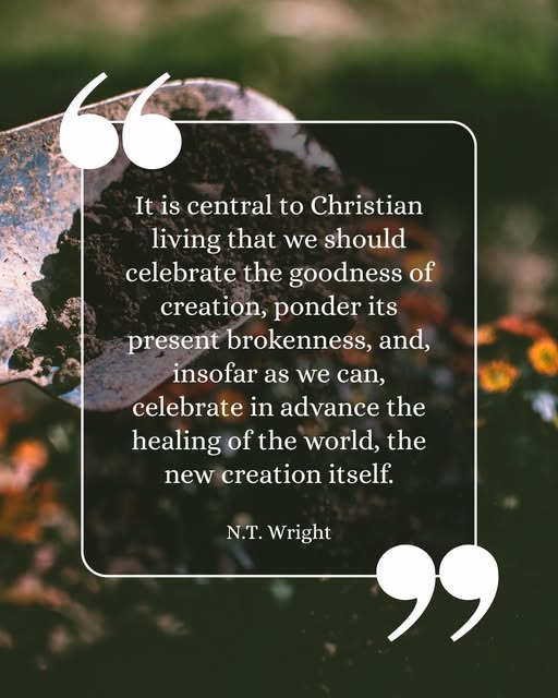 “It is central to Christian living that we should celebrate the goodness of creation, ponder its present brokenness, and, insofar as we can, celebrate in advance the healing of the world, the new creation itself. ” NT Wight How is God calling you to bring healing to your little corner of creation. #healing #creation #ntwright #quotes.