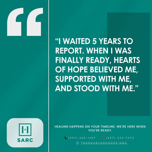 Home - Hearts of Hope We are thevoice for sexualassault victimsin Acadiana. As the only sexual trauma center in AcadianaHearts of Hope oversees all sexual assaultreporting and case management for childrenand adult victims in the community. We listen. We believe.