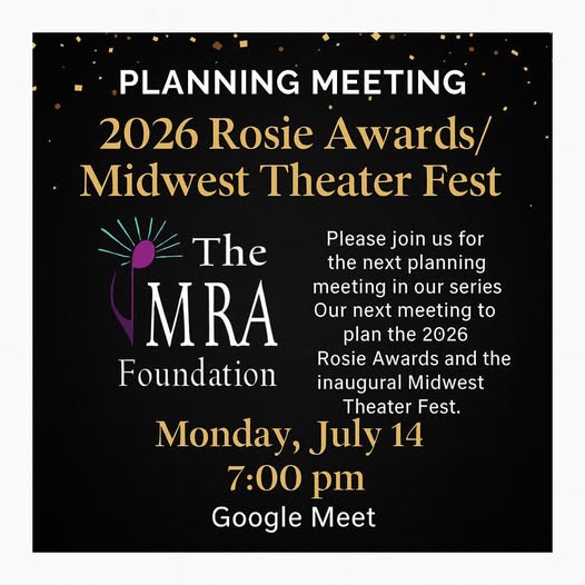 2026 Rosie Awards + Inaugural Midwest Theater Fest Planning continues — and you’re invited. The Melanie and Rosalie Albright Foundation is hosting a virtual planning meeting on Monday, July 14th at 7:00 PM (EST) via Google Meet to keep the momentum going for next year’s Rosie Awards and the first-ever Midwest Theater Fest. 🌟 We started with a winter brainstorming session — now it’s time to shape the vision.