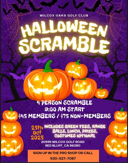 ππ» Join us for a spooktacular day on the course. Get your team together for the Wilcox Oaks Halloween Scramble β happening Saturday, October 25th at 9:00 AM. β³ 4-Person Scramble π΅ $45 Members | $75 Non-Members π Includes green fees, range balls, lunch & prizes π§ββοΈ Costumes optional β but encouraged.