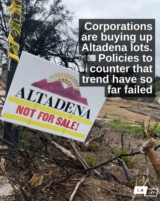 đź”— Read more: https://ow. ly/BJfI50X7upJ Homes that burned in the Eaton Fire in Altadena are being disproportionately bought up by corporate developers, according to a recent analysis by nonprofit researchers. Of 241 properties sold through September, more than half went to corporate developers, mostly in West Altadena, according to Strategic Actions for a Just Economy, or SAJE.