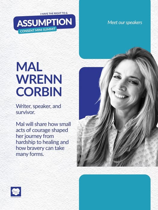 What does courage look like in everyday life. Tomorrow at Assumption University, the Consent Mini Summit continues with writer, speaker, and survivor Mal Wrenn Corbin. She shares how small acts of courage carried her from hardship to healing and how bravery can take many different forms.