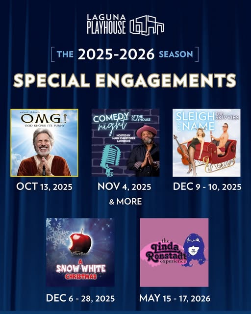 From laugh-out-loud comedy to iconic tribute bands and festive holiday fun, our 2025–2026 Special Engagements are bringing the energy all season long. Whether you're craving nostalgia, sparkle, or a night of pure entertainment, Laguna Playhouse has something for everyone🌟🍾 Come celebrate the magic of live theatre—where every show is a new adventure. 🎟️ Tickets and details at lagunaplayhouse.