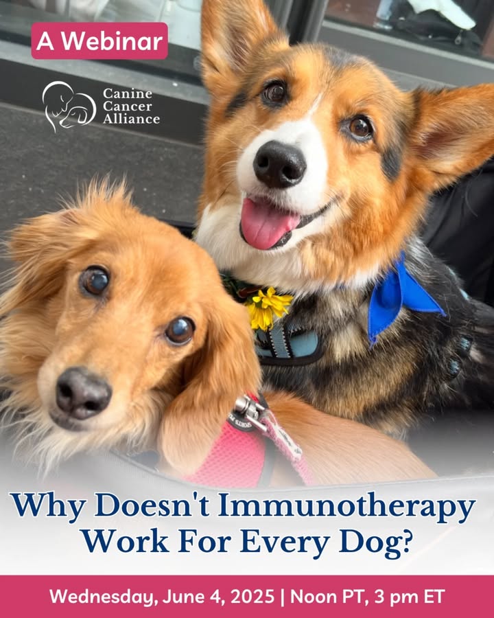 Our next webinar is about: "Why Doesn't Immunotherapy Work For Every Dog. " Immunotherapy is one of the most promising advances in treating canine cancer, with some dogs achieving long-term remission and no signs of recurrence. But with today’s immunotherapy treatment, it doesn’t work for every patient.