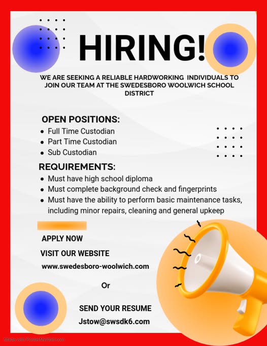 Home - Swedesboro-Woolwich School District Logo Image Logo Title In This Section Home Upcoming Events View Full Calendar News Announcements Save the Date for Spring Family Fun Night April 3rd from 600830 PM at Stratton School. All SWSD families are invited to attend. Families can shop the Scholastic Book Fair play games grab dinner from the food trucks and so much more. Stay tuned for details as we get closer to the event.