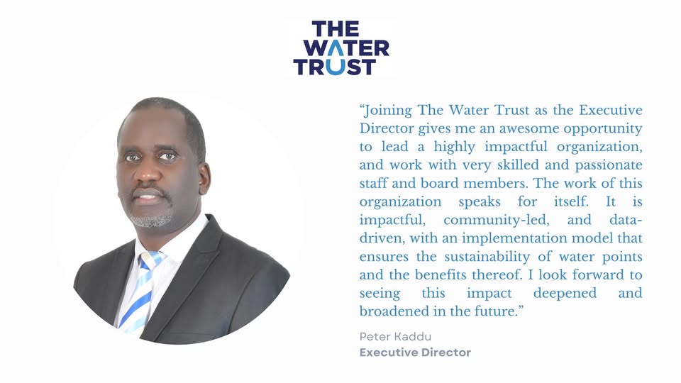 The Water Trust is pleased to announce Peter Kaddu as the organization’s new Executive Director. Peter will lead The Water Trust in an ambitious chapter of growth, supporting the global organization, headquartered now in Uganda, as it scales programs throughout Uganda and East Africa. Peter brings more than 20 years of experience to the role.