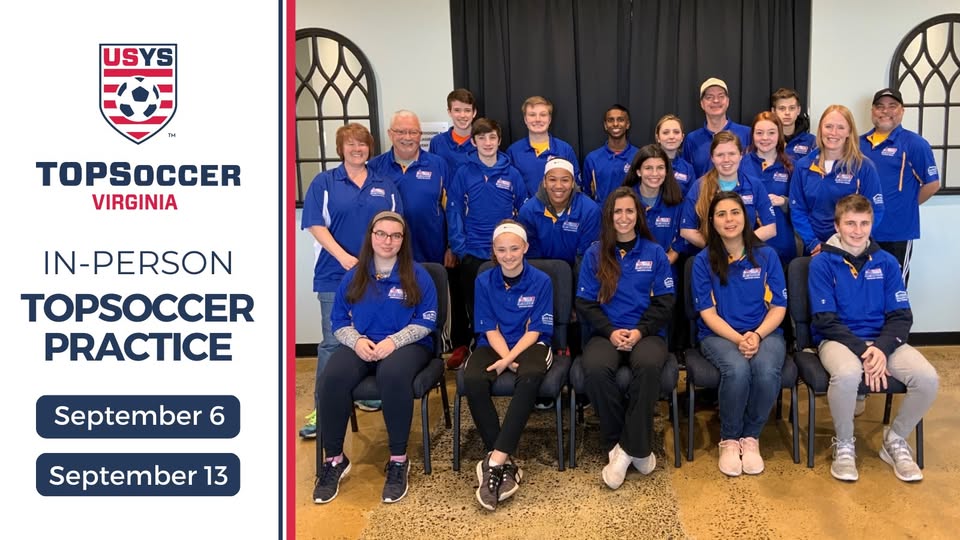 Interested in learning more about TOPSoccer. Attend an in-person TOPSoccer practice led by VYSA TOPSoccer Chair, John Schlenker. 📅 Saturday, September 6 or 13 🕤 9:30–10:30 AM 📍 Vint Hill Gym (just east of Warrenton, VA) Come see TOPSoccer in action.