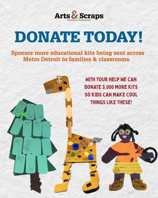 Arts & Scraps | Providing Reused Materials and Educational Resources | 16135 Harper Avenue, Detroit, MI, USA About Store Programs Volunteer Donate Creative Kits More DONATE Thank you so much to our donors. We could not do the work that we do without your love and financial support. Click the link below to make a onetime donation or subscribe to become a monthly donor. Donate Now BOOK APROGRAM Experience our B12 Educational Philosophy at your school program or event.