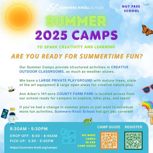 Camps at Summers-Knoll are renowned in our community for fun and creative summertime learning experiences. Join us for available camps focused on young entrepreneurship, gardening, or building solar robots. Some campers will opt for day camping, while others will explore our solar system or the incredible ocean life on our planet.
