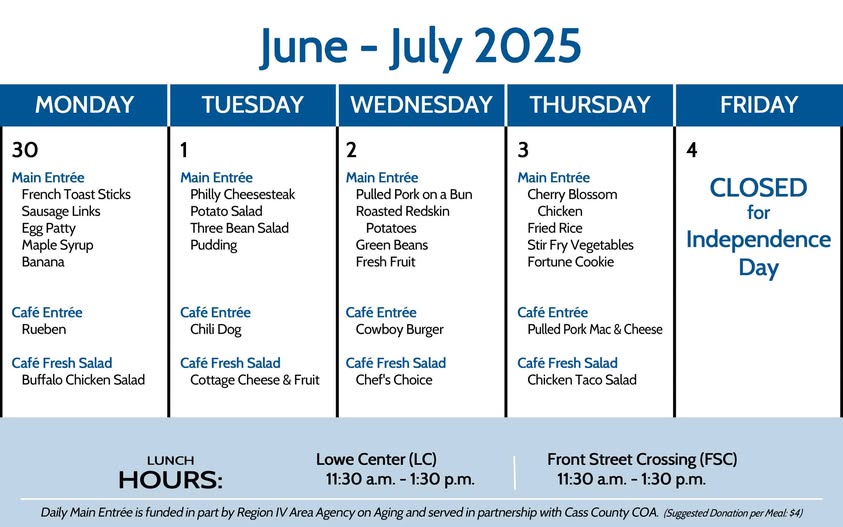 Cass County COA | Making longer lives…Better lives The Cass CountyCouncil on Aging is a nonprofit organization that provides a broad range of services to Cass County seniors. Our mission is to provideservices and programs to assist individuals to age and live well with dignity and independence. Featured Activities Events Friday May 9 Dueling for Dollars Dueling Piano Event benefitting Meals on Wheels of Cass CountyMay 9 600pmMarion Magnolia Farms Friday Apr 4 Hand and Foot LoweApril 4 100pmLowe Center Cassopolis Saturday Apr 5 Saturday Morning YogaApril 5 900amLowe Center Cassopolis Monday Apr 7 Yoga April 7 900amLowe Center Cassopolis Monday Apr 7 Hiking ClubApril 7 1000amLowe Center Cassopolis Tuesday Apr 8 Hearing Clinic LoweApril 8 900amLowe Center Cassopolis Tuesday Apr 8 Functional FoundationsApril 8 900amLowe Center Cassopolis Tuesday Apr 8 Edwardsburg BINGO EUCHRE And More. April 8 900amEdwardsburg Fire Department See More Featured Activities Our Services Care Services As the population of those 60 increases the Care Services Team at the Cass County COA is committed to providing programs and services to help seniors stay in their homes.