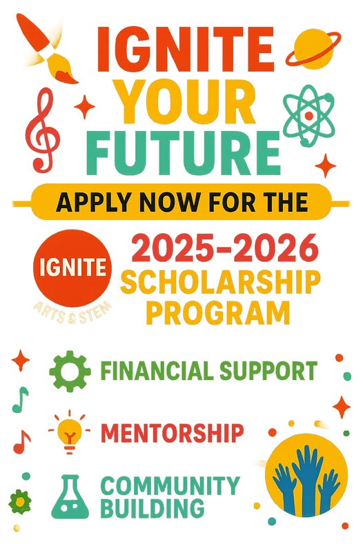 🚀 Exciting news for BIPOC students. The Ignite Arts & STEM 2025-2026 Scholarship Program is here to empower you on your journey toward a vibrant career in the arts and STEM fields. ✨ With our scholarship, you not only receive financial support, but also mentorship from industry leaders and a community of fellow changemakers urging you on.