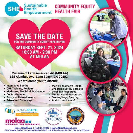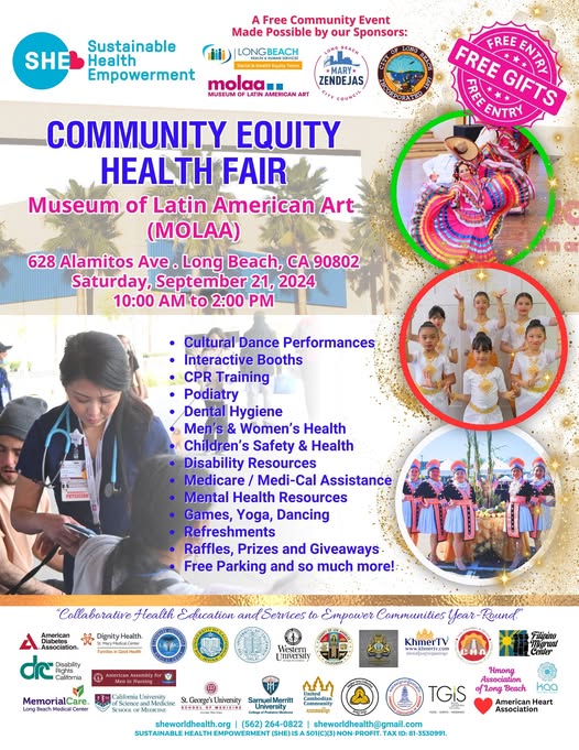 We are pleased to share this 3rd in a series of Health Equity Fairs as part of two grants (2023-2024) from the City of Long Beach, and the Long Beach Department of Health. It has been a labor of love putting it together, but we are fortunate to also have the tremendous support of District1 Councilwoman Mary Zendejas, and the Museum of Latin American Arts (MOLAA), in addition to the volunteers who give tirelessly to be of service, and straight from the heart. It is a community health fair and we are recruiting more interpreters/translators.