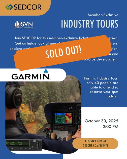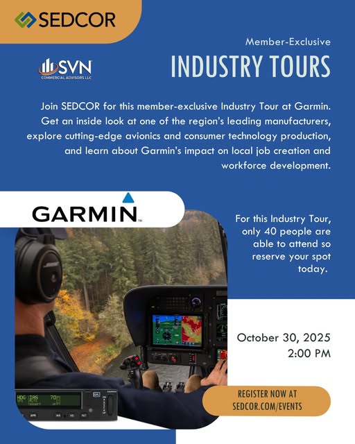 We’re about two weeks out from SEDCOR’s Industry Tour at Garmin in Salem, presented in partnership with SVN Commercial Advisors, LLC, and the tour has already reached capacity. Interest in this event has been incredible, highlighting our region’s enthusiasm for innovation and advanced manufacturing. While all spots are currently filled, you can still add your name to the waitlist for a chance to join the tour if additional openings become available.