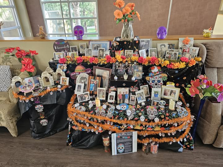 DΓa de los Muertos at Palm Terrace Co-op I in Ontario, CA. DΓa de los Muertos, or Day of the Dead, is a Mexican tradition that joyfully honors the lives of loved ones who have passed. The ofrenda (altar) is its heart--decorated with photos, candles, marigolds, and offerings that welcome their spirits home.