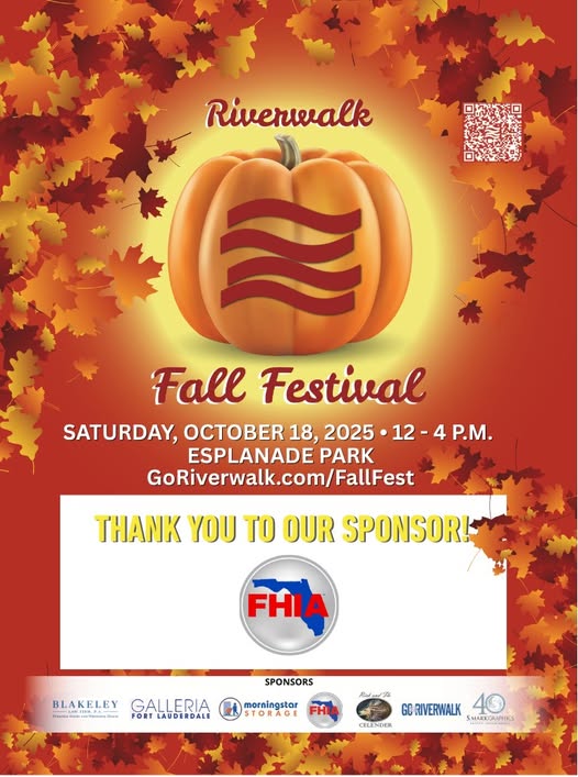 ππ9th Annual Riverwalk Fall Festival - Sponsor Highlight ππ FHIA Remodeling - Thank you FHIA, we're thrilled to have your support in making our downtown Riverwalk District a more vibrant place to Live, Work & Play. 9th Annual Riverwalk Fall Festival Saturday, October 18 | 12 pm - 4 pm Esplanade Park | GoRiverwalk. com/fallfest Attendance at the Riverwalk Fall Festival is free and open to the public, thanks to the support of our sponsors: Galleria Fort Lauderdale, FHIA Remodeling, Rick and Flo Celender, Blakeley Law Firm, P.