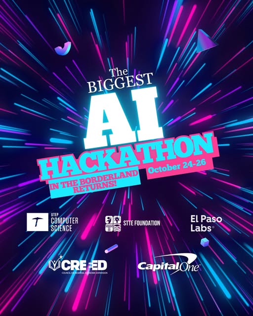 🚀 The Biggest AI Hackathon is Back — October 24–26, 2025. This past April, the Borderplex showed up big: 184 participants, 40 university teams, 6 high school teams, and an all-female finalist team pushed the limits of AI innovation. From first-timers to seasoned coders, the energy was off the charts — and the projects were nothing short of legendary.