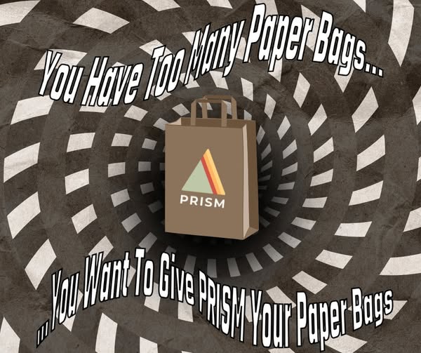 Not that we have to hypnotize you for your support… but we really need paper bags. 🌀 Our once-mountain-high stockpile has officially run out, and now we need your help to replenish it. Paper bags are essential for so much of what we do—groceries in the Marketplace Food Shelf, treasures from Shop for Change, fresh produce at distribution days—they keep it all moving smoothly.