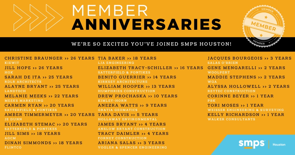 SMPS HOUSTON CHAPTER - Home Page Connect Join Our Mailing List Subscribe Welcome to SMPS Houston The Society for Marketing Professional Services SMPS is a group of marketing and business development professionals from architectural engineering planning interior design construction and specialty consulting firms. Our Houston Chapter actively promotes local regional and national involvement to provide local marketing professionals opportunities for business and personal development and to build longlasting relationships with other industry professionals. SMPS can help you as a member advance your career and provide new opportunities for your firm. SMPSs mission is to advocate for educate and connect leaders in the building industry.