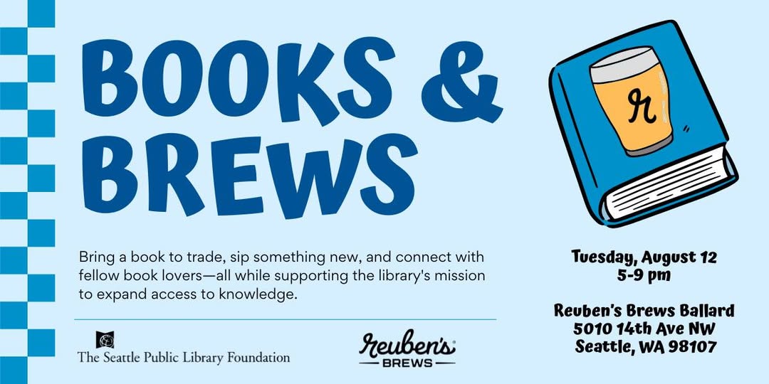 Celebrate books and community at Reuben's Brews next week. Join us in Ballard on Tuesday, August 12 for a book swap with your fellow library lovers. Bring a book to share and find your next literary treasure β plus $1 from every drink supports The Seattle Public Library.
