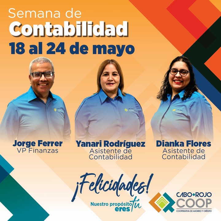En Cabo Rojo Coop queremos reconocer la labor de Jorge Ferrer, Yanari Rodríguez, Dianka Flores y Yanira Colon. Su precisión, responsabilidad y visión estratégica son fundamentales para la estabilidad financiera de nuestra Cooperativa. Gracias por garantizar que cada número cuente y por ser el soporte que nos permite tomar decisiones informadas.