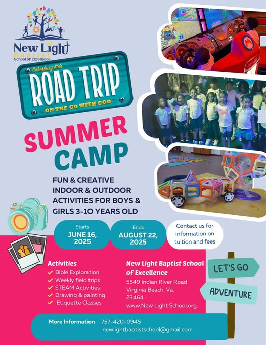 New Light Baptist School of Excellence | Affordable Child Care in Virginia Beach ABOUT PROGRAMS GALLERY NEWS EVENTS DONATE ENROLLMENT CONTACT More 5549 E. Indian River RoadVirginia Beach VA 23464 757 4200945 Child Care Private School STEAM Focused Faith Based Affordable Open 630 a. m. to 600 p.
