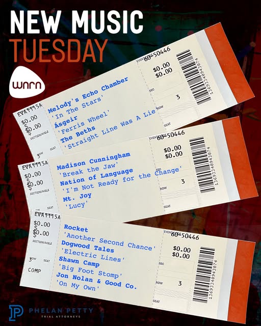 We've got your ticket to new music. Grab a seat and listen to WNRN all day today as these new tunes take the stage: Melody's Echo Chamber 'In The Stars' Γsgeir 'Ferris Wheel' The Beths 'Straight Line Was A Lie' Madison Cunningham 'Break the Jaw' Nation of Language 'I'm Not Ready for the Change' Mt. Joy 'Lucy' Rocket 'Another Second Chance' Dogwood Tales 'Electric Lines' Shawn Camp 'Big Foot Stomp' Jon Nolan & Good Co.