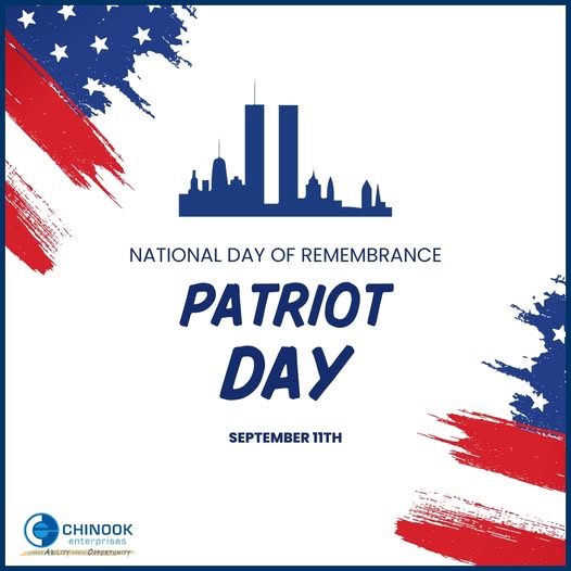 Today we honor the memory of the lives lost on September 11, 2001, and recognize the courage of the first responders, survivors, and families forever affected by that day. We also reflect on the strength of our communities when we come together with empathy, unity, and purpose. #WeAreChinook #EmploymentForAll #PatriotDay #911Remembrance #NeverForget #DayOfService.