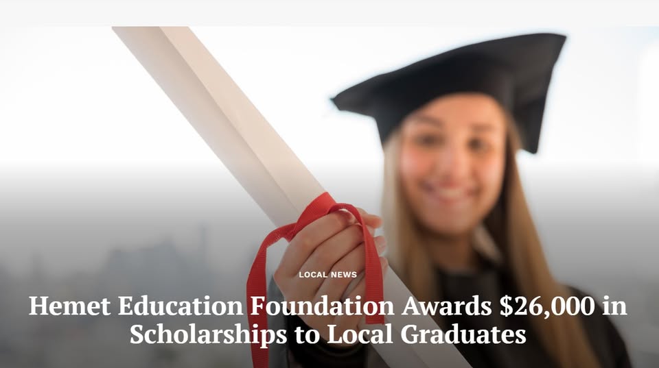 The Hemet Education Foundation was formed in 1978 as a support group for the Hemet Unified School District and provides scholarships to local students and financial support for a variety of programs in the district.