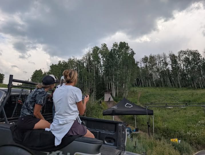 A shoutout to all the parents who support their athletes, waiting in the rain for them to come down the trail, up the mountain, or off the jump. Here, parents and AVSC staffers Tess and Meredith wait for their boys competing in the Aspen Snowmass Tuesday night SBP Race Series at Snowmass. The AVSC Freeride team rides and races every Tuesday night through the end of July.