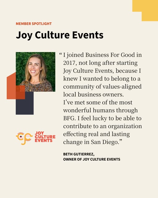 @JoyCultureEvents exists to create meaningful, kickass events with good people doing important work. They plan and produce live events, mostly serving nonprofits in San Diego County. We asked Beth Gutierrez, owner of Joy Culture Events, what excites her most about her work.