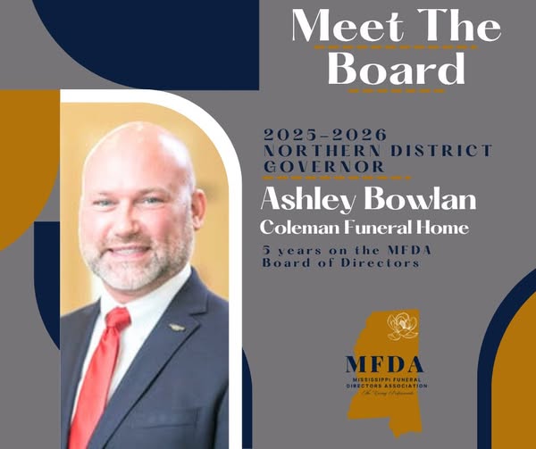 Meet the Board: Ashley Bowlan Ashley Bowlan is a licensed funeral director and embalmer at Coleman Funeral Home in Olive Branch. A native of Olive Branch, Ashley previously served in Atlanta, GA, and holds licenses in both states. He works closely with families through arrangements, services, and paperwork, and helps with community outreach and staff training.