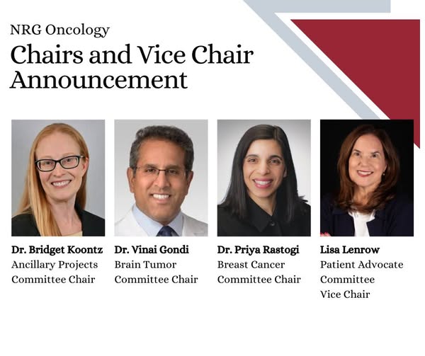PRESS RELEASE: NRG Oncology Adds New Leadership Members to Ancillary Projects, Brain Tumor, Breast Cancer, and Patient Advocate Committees - Read more: https://www. nrgoncology. org/Home/News/Post/nrg-oncology-adds-new-leadership-members-to-ancillary-projects-brain-tumor-breast-cancer-and-patient-advocate-committees.