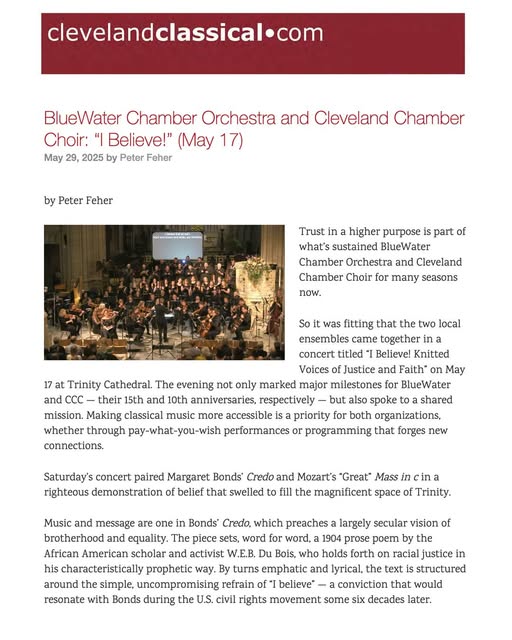 Don’t miss the concert TONIGHT @7:30 as we collaborate with the Cleveland Chamber Choir at Trinity Cathedral in downtown Cleveland. Renowned soprano Katherine Jolly to solo. The program features what is believed to be the Cleveland premiere of Margaret Bonds’ "Credo" — a setting of Civil Rights activist W.