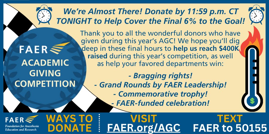 FAER is a non-profit, related foundation of the American Society of Anesthesiologists (ASA) aimed at advancing medicine through education and research in anesthesiology.